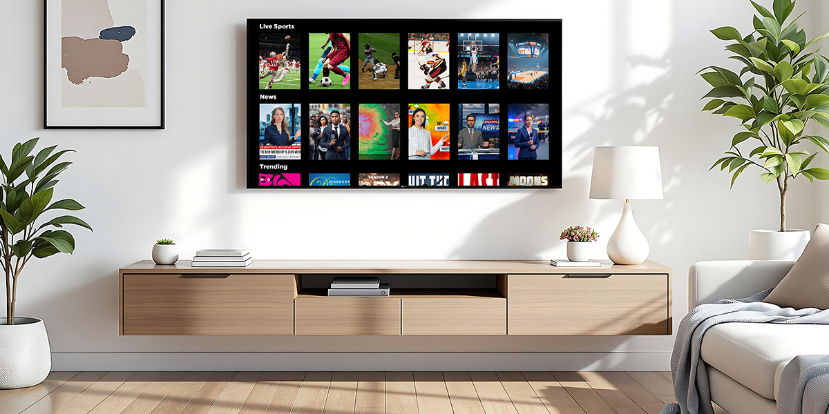 This positions Pay TV as the home screen of the living room, surfacing live sports, local news, and trending content through unified discovery and cross-app search.
